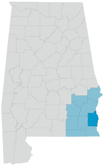 Henry County is located in the southeastern corner of Alabama, bounded on the east by the Chattahoochee River and the State of Georgia. The northeast corner is bordered by Walter F. George Lake where visitors can enjoy boating, camping and fishing. The cities and towns in Henry County include Headland, Abbeville, Haleburg and Newville. According to the most recent census, the population of Henry County is 17,302.
